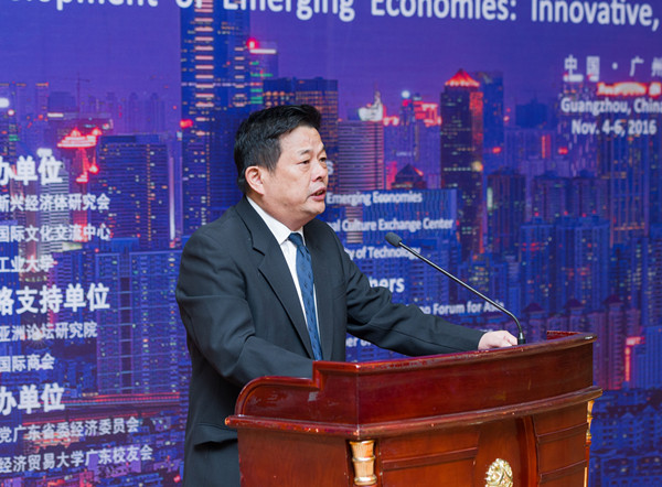 11月5日,2016新興經(jīng)濟體論壇(國際學術會議)在廣州舉行,主題是“新興經(jīng)濟體發(fā)展:創(chuàng)新、活力、聯(lián)動、包容”。中共中央對外聯(lián)絡部原副部長于洪君,巴西聯(lián)邦共和國參議院參議員、原總統(tǒng)候選人C?布瓦爾克,省政府外事辦公室副主任李堅、校長陳新教授,中國新興經(jīng)濟體研究會會長、中國社會科學院世界經(jīng)濟與政治研究所所長張宇燕研究員為論壇致辭。會議分主題報告和專題論壇舉辦。