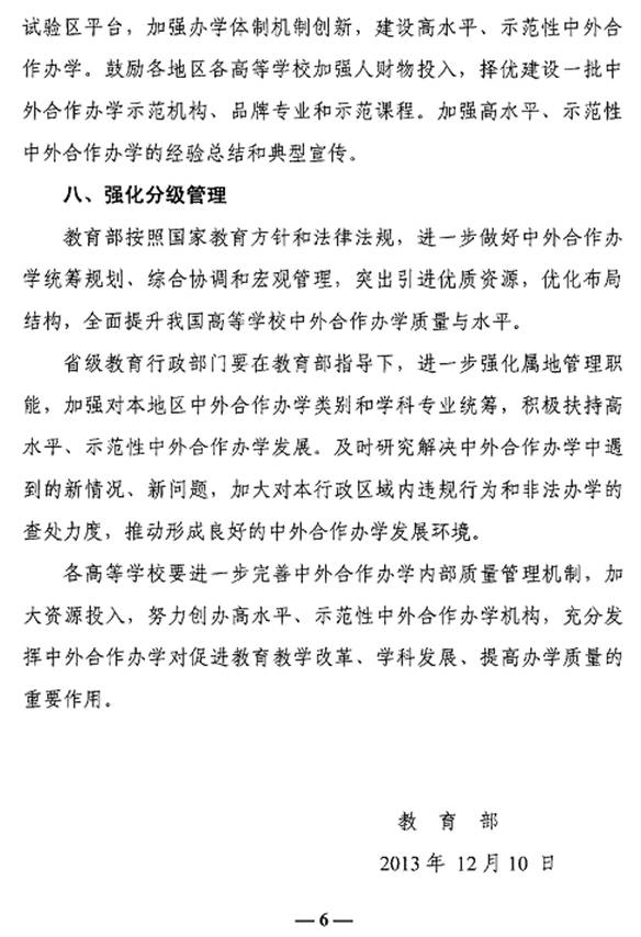 教育部關(guān)于進(jìn)一步加強(qiáng)高等學(xué)校中外合作辦學(xué)質(zhì)量保障工作的意見 教外辦學(xué)[2013]91號(hào) 4