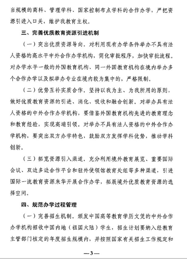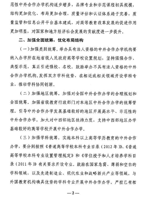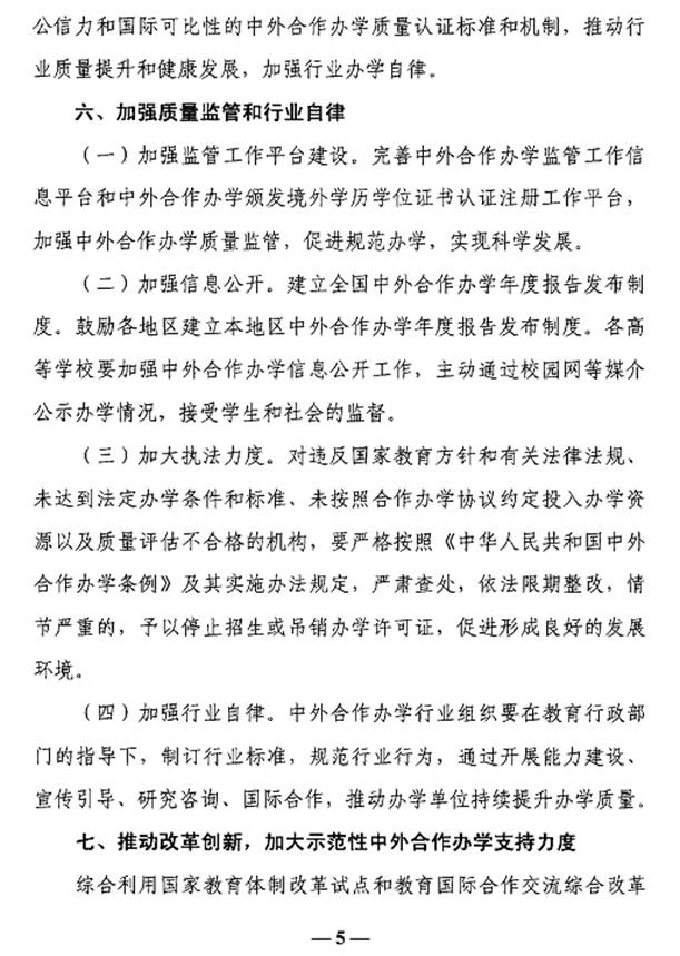 教育部關(guān)于進(jìn)一步加強(qiáng)高等學(xué)校中外合作辦學(xué)質(zhì)量保障工作的意見